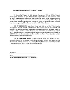 Read Online Exclusion Resolution For Llc Member Defense Security Kindle Editon By Click Button. Exclusion Resolution For Llc Member Defense Security it’s easy to recommend a new book category such as Novel, journal, comic, magazin, ect. You see it and you just know that the designer is also an author and understands the challenges involved with having a good book. You can easy klick for detailing book and you can read it online, even you can download it